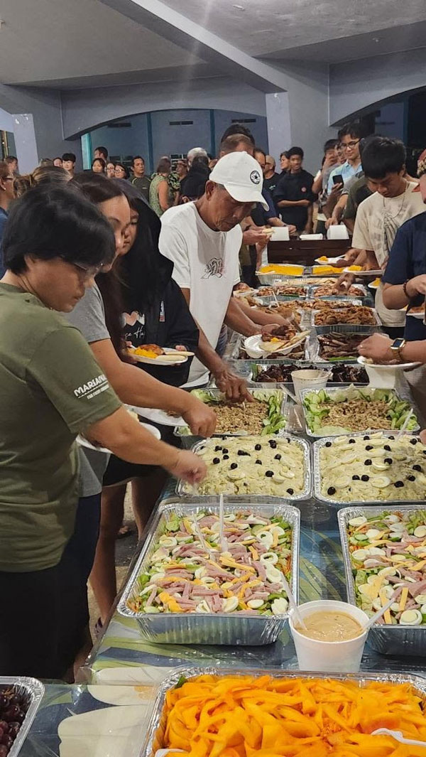 A dinner buffet of favorite local dishes rewards runners and supporters of Rota Marathon 2026 held in the Marianas on Jan. 31, 2026.