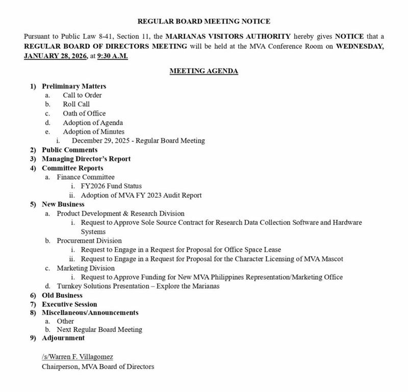 The Marianas Visitors Authority is recruiting participants for its Marianas Far From Ordinary Content Creators Program to be launched in February 2026. Interested applicants may apply at https://forms.gle/ff9iKEP1WcFN6eJA6.