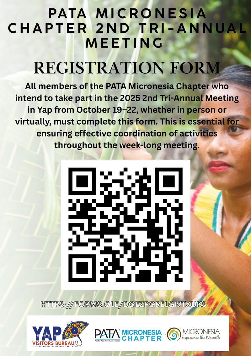 Mark your calendars! The PATA Micronesia Chapter 2nd Tri-Annual Meeting will take place in the beautiful state of Yap, FSM, from October 19 to 21, 2025.