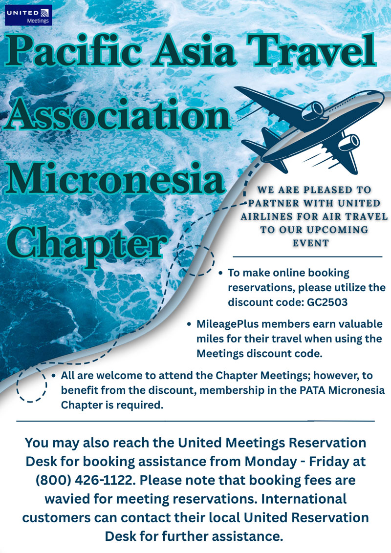 Additionally, please be advised that the United code can only be applied through MIC Solutions. Recipients should email [email protected] with the subject line: "PATA Micronesia Membership Meeting."