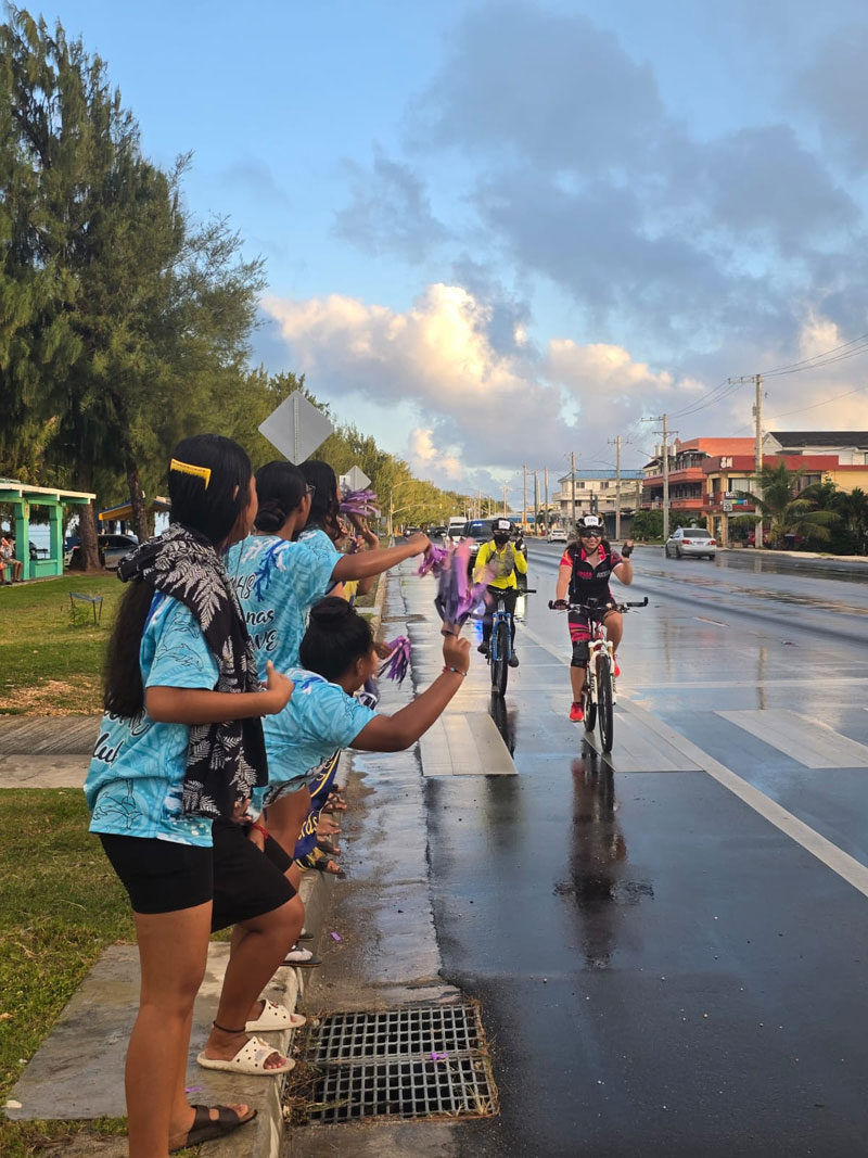 School MYWAVE (Marianas Youth Welcome All Visitors Enthusiastically) Club members lined the course of Saturday’s (Dec. 6) Hell of the Marianas century cycle to cheer for participants. The race attracted 110 registrants from eight countries and territories. Cheering students along Beach Road represented Garapan Elementary School, Admiral Herbert G. Hopwood Middle School, Marianas High School, Oleai Elementary School, and Saipan Southern High School.